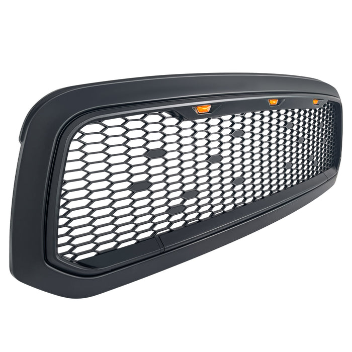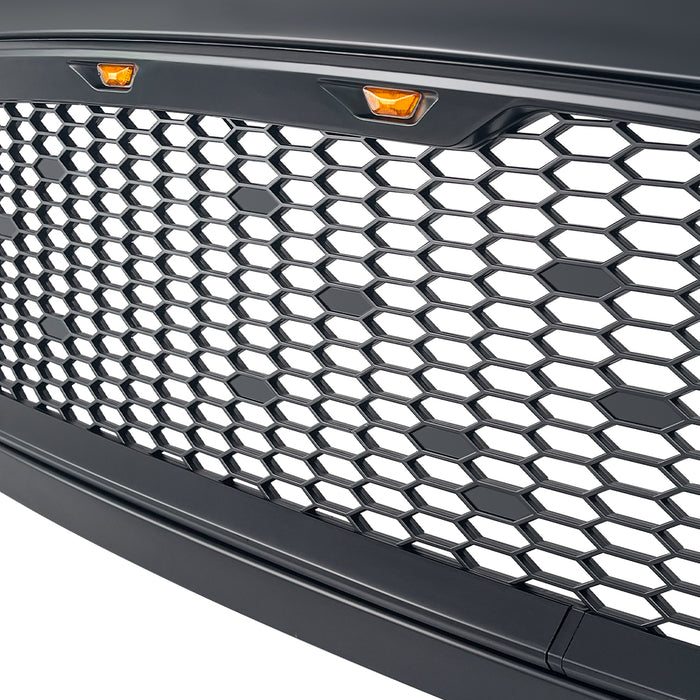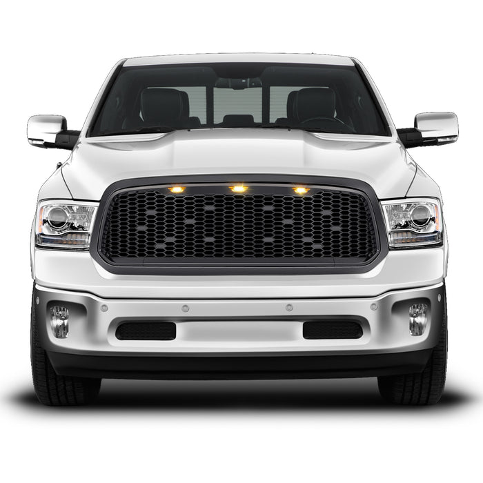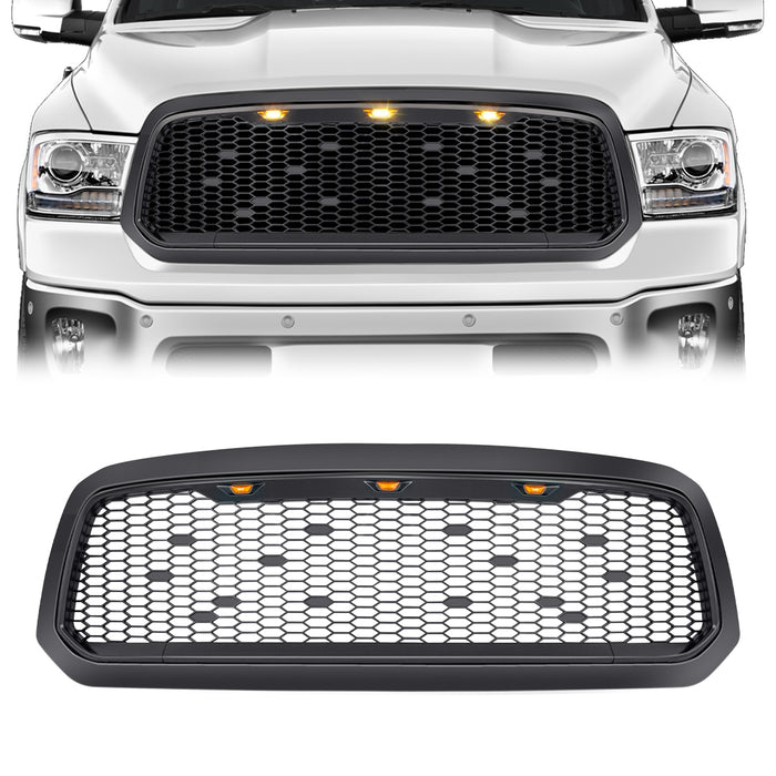 Mesh Grille W/ Amber Lights - Matte Black For 2013-2018 Dodge Ram 1500