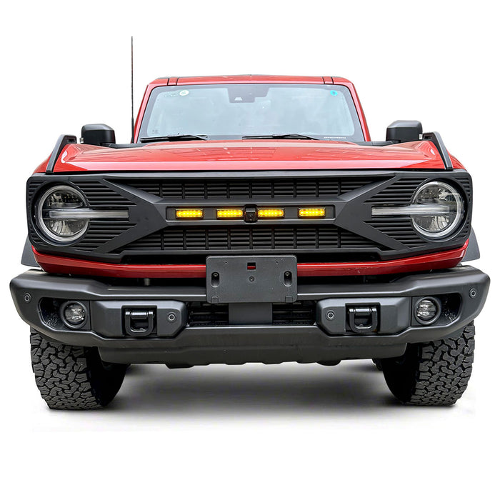 Tomahawk Grille W/ Amber LED Running Lights - Matte Black For 21+ Ford Bronco