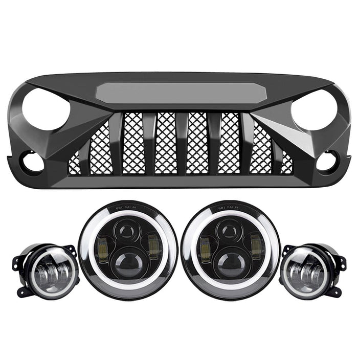 Gladiator Vader Grille & Halo Headlights & Halo Fog Lights Combo for 07-18 Jeep Wrangler JK