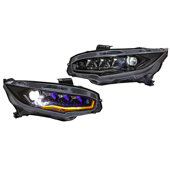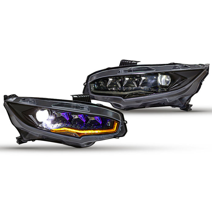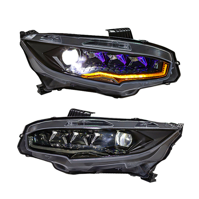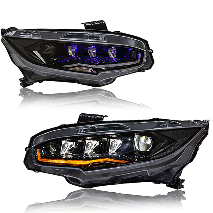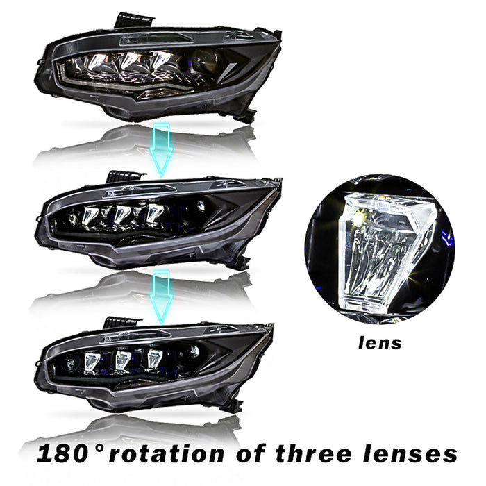 Diamond Lens Rotating LED Headlights W/Sequential Turn Signal For 2016-2021 10th Gen Honda Civic