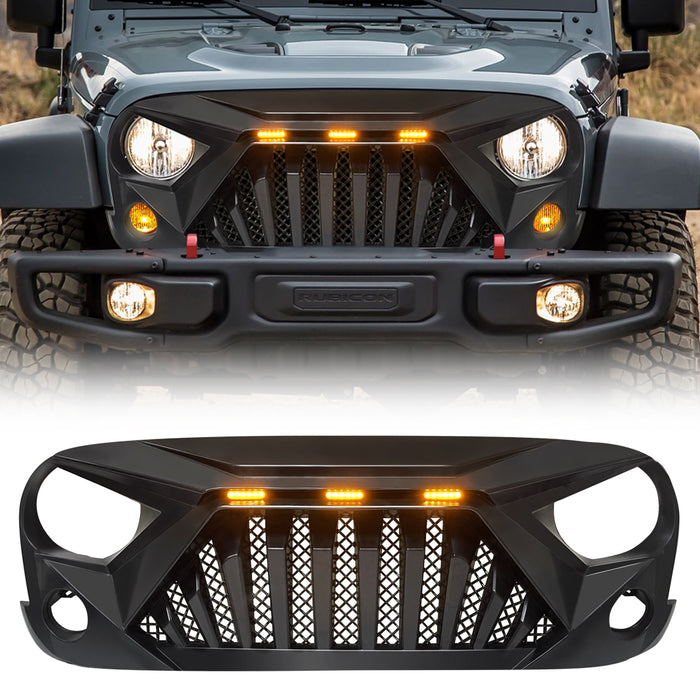 Goliath Grille W/ Amber LED Running Light - Matte Black For 07-18 Jeep Wrangler JK