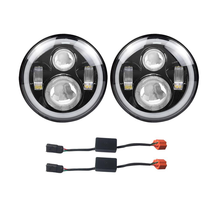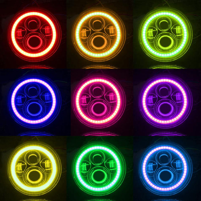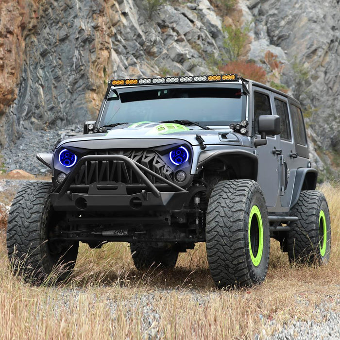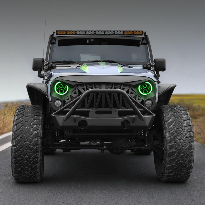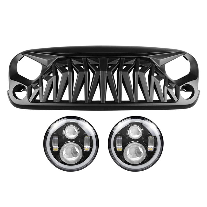 RGB Halo Headlights & Shark Grilles Combo for 07-18 Jeep Wrangler JK/ JKU