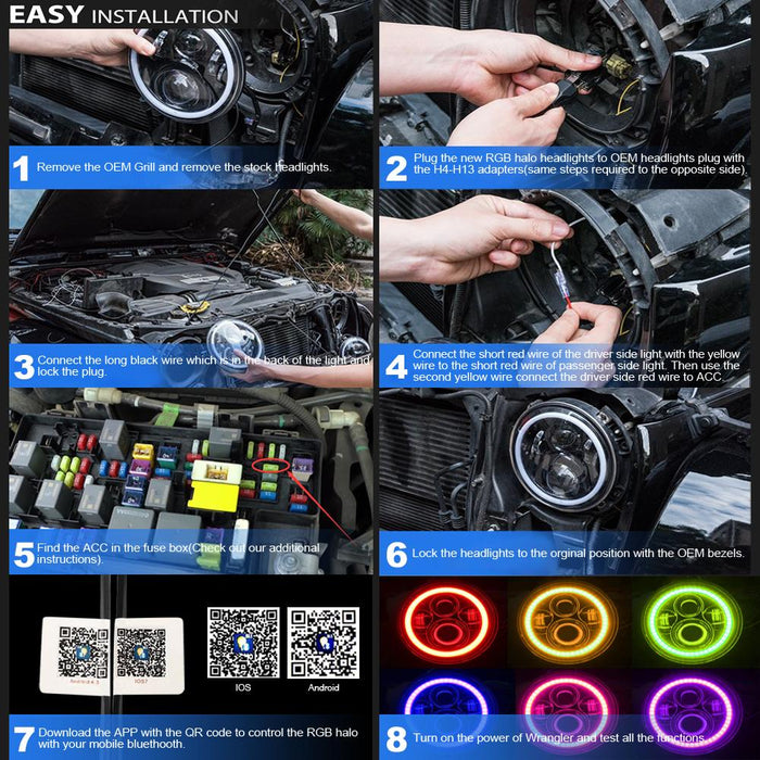 7 Inch RGB Halo Headlights For 18+ Wrangler JL & Gladiator JT