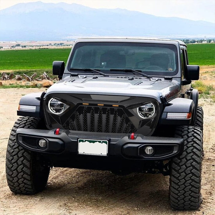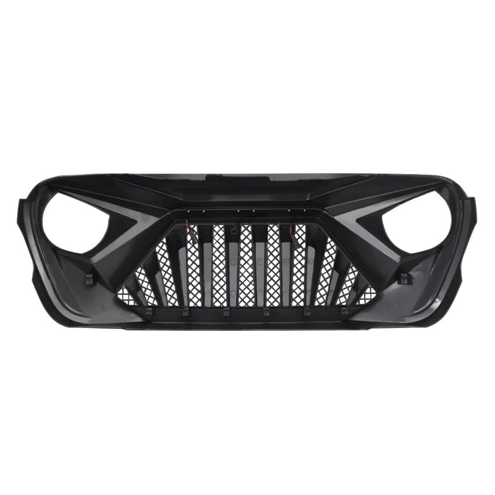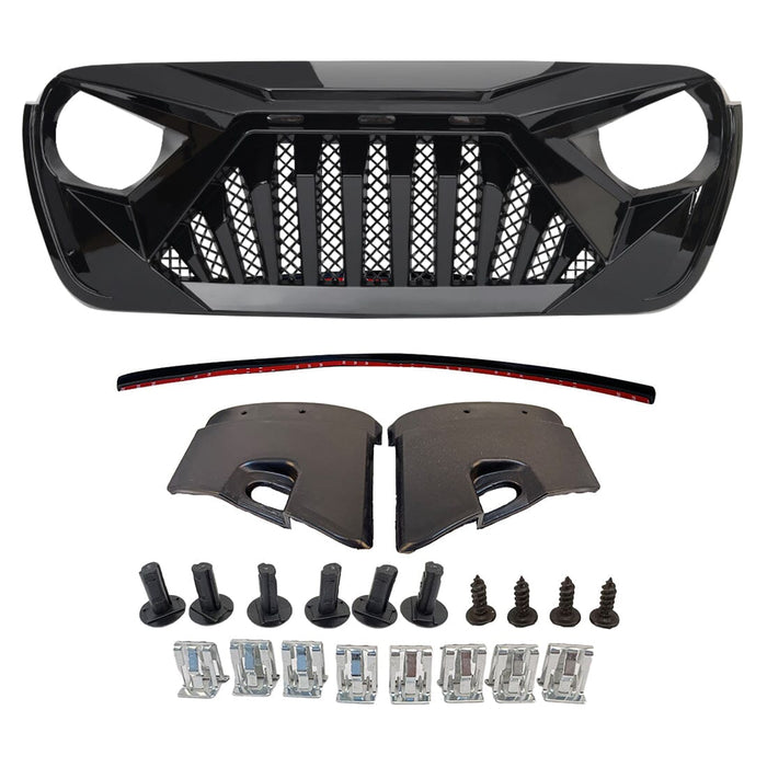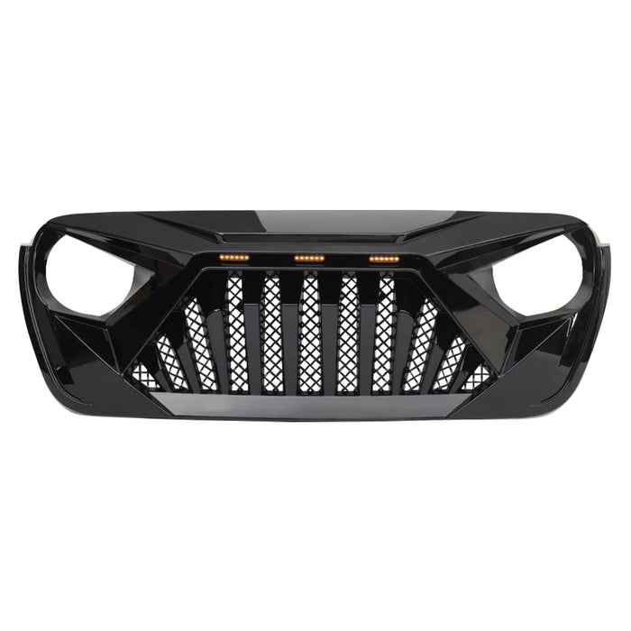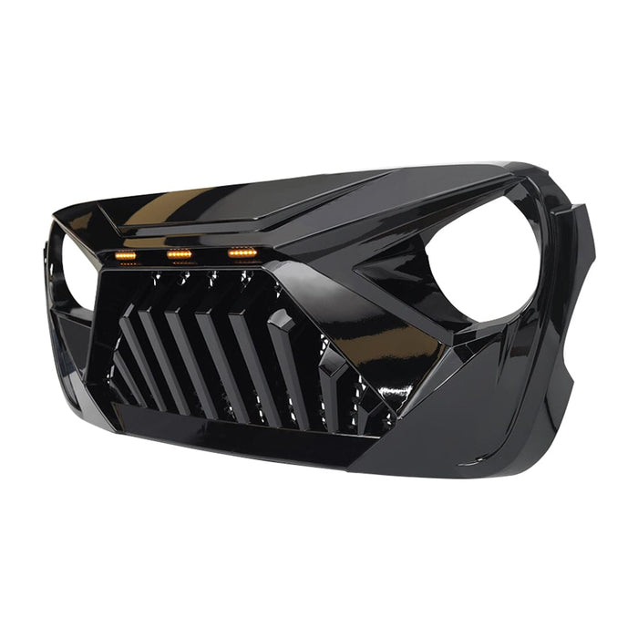 Goliath Grille W/ Amber Led Running Lights - Glossy Black For 18+ Jeep Wrangler JL & Gladiator JT