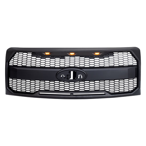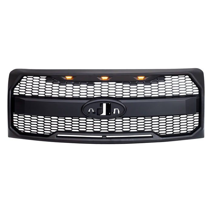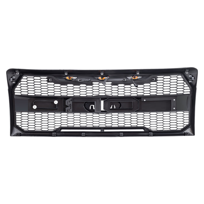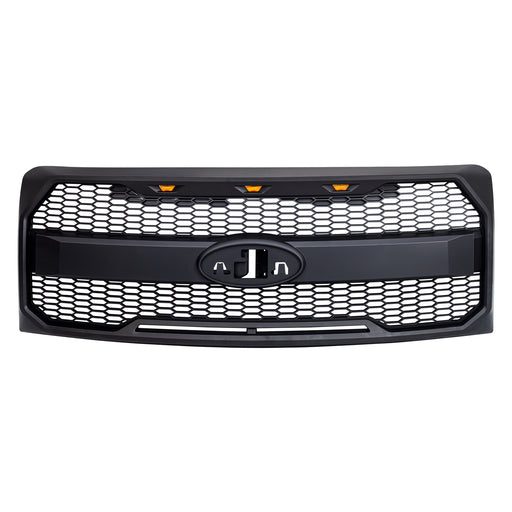 Raptor Style Mesh Grille W/ Amber Lights Emblem Base - Matte Black For 2009-2014 Ford F150